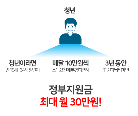 4.청년내일저축계좌 가입혜택 : 월 10(30)만원의 정부지원금